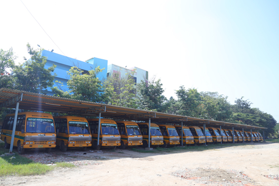 Mr. Subramani, The transport manager, takes care of the system periodic orientation workshops are conducted to drivers and cleaners on “safe driving”.